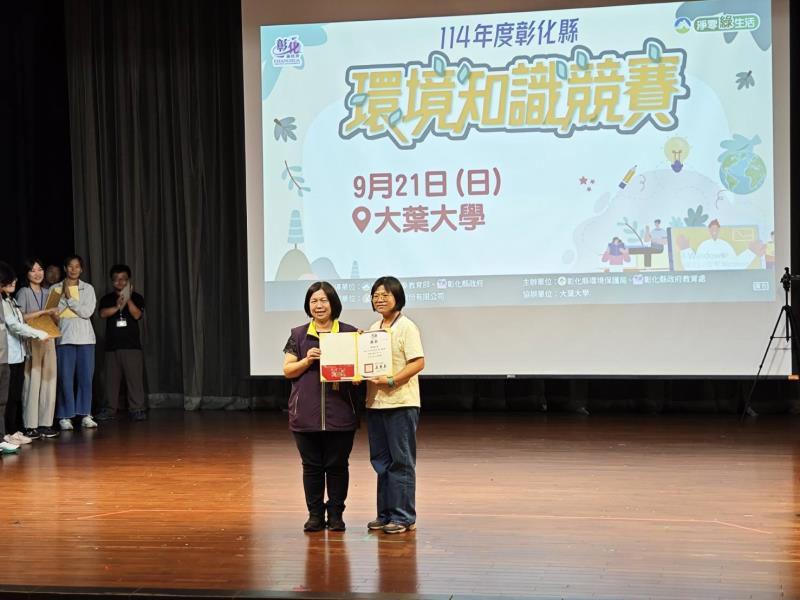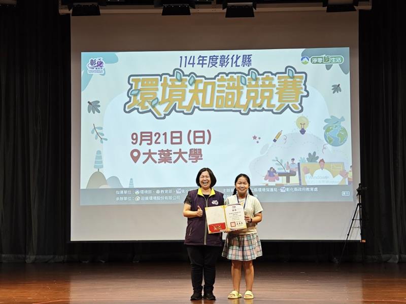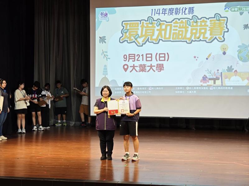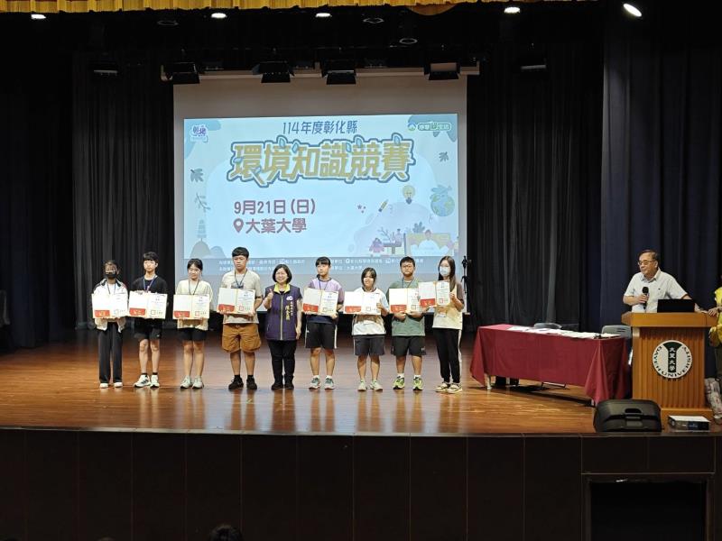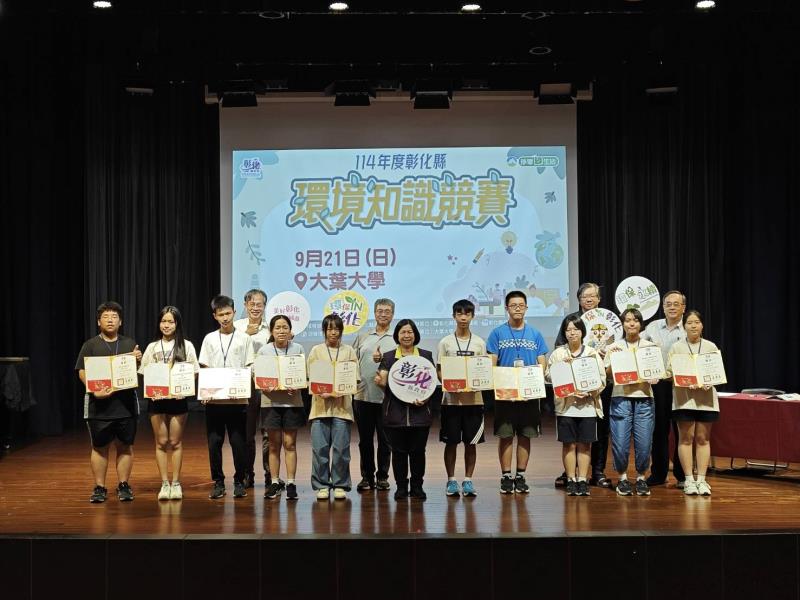 「114年彰化縣環境知識競賽」今日(9月21日)在大葉大學熱烈舉行,今年報名人數創下歷年新高,現場吸引眾多民眾與師生踴躍參與。今年競賽設有學童組、青少年組、青年組及社會組四大組別,其中青年組與社會組在報名截止前即已額滿,顯示無論校園或社會,對於環境議題的關心與參與度皆持續提升。比賽經過二階段激烈角逐,最終由僑信國小黃馨平同學、精誠國中陳紫涵同學、彰化高中陳旻睿同學及社會組李秀蕙脫穎而出,榮獲各組第一名。